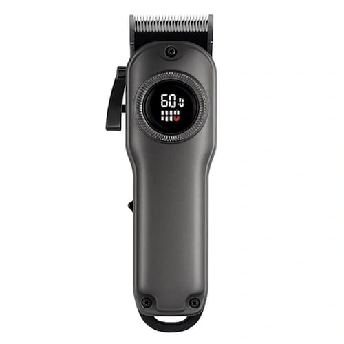 Características: Design Premium: Acabamento moderno com degradê dourado e corpo ergonômico em metal. Display LED Inteligente: Mostra carga da bateria, tempo restante e indicadores de manutenção. Lâminas de Precisão em Aço Inoxidável: Corte suave, rápido e uniforme, sem puxar os fios. Motor Potente e Silencioso: Alto desempenho para e doméstico. Bateria Recarregável de Longa Duração: Autonomia para várias horas de uso contínuo. Ajuste de Altura de Corte: Alavanca lateral para personalizar o corte.