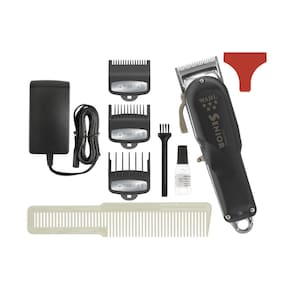 A Senior Cordless está entre as máquinas mais potentes do mercado e garante ao profissional a liberdade de trabalhar com uma máquina sem fio. Com ela, o barbeiro corta mais rapidamente e com mais agilidade isso ocorre devido ao motor da máquina que é o mais potente da linha 5 Star. Além disso, essa máquina permite que você faça qualquer tipo de corte e quando a bateria chegar ao fim, basta plugá-la na tomada e continuar trabalhando.