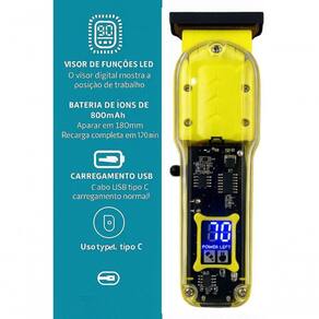 Máquina de Cortar Cabelo Transparente Amarela com Visor Digital Precisão, Potência e Estilo Moderno
