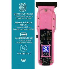 Maquina De Cortar Cabelo Transparente Visor Digital Rosa - Bivolt