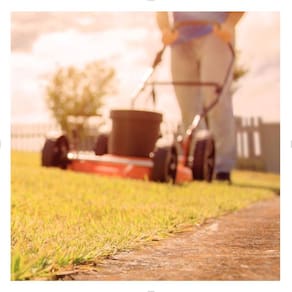 Cortador de grama CE45M com chassi metálico, motor de 2500 W (2 hp), tensão de 220 V e frequência de 60 Hz.