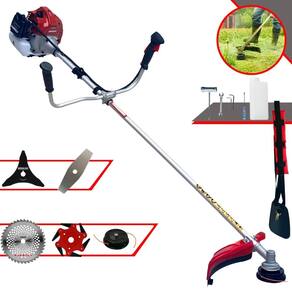 Com guidão ergonômico lateral, permite um alcance amplo e maior mobilidade, capaz de aumentar a produtividade diária. Possui motor 2 tempos á gasolina, de 52 Cilindradas; 2,5HP de potência que proporcionam maior performance e economia na operação. Seu conjunto de acessórios inclui kit de ferramentas, cinto de suporte almofadado, carretel de nylon e lâmina de corte 3 pontas.