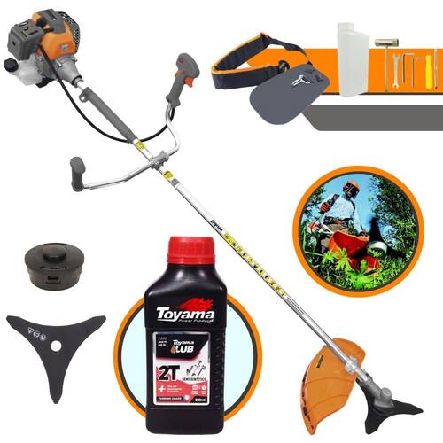 Com guidão ergonômico lateral, permite um alcance amplo e maior mobilidade, capaz de aumentar a produtividade diária. Possui motor 2 tempos á gasolina, de 51,6 Cilindradas (52cc) 10.000 de rotação 2,0 HP de potência que proporcionam maior performance e economia na operação. Seu conjunto de acessórios inclui kit de ferramentas, cinto de sustentação, carretel de nylon e lâmina de corte 3 pontas.