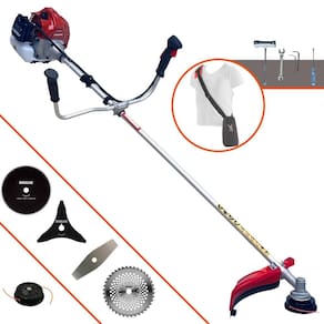 Com guidão ergonômico lateral, permite um alcance amplo e maior mobilidade, capaz de aumentar a produtividade diária. Possui motor 2 tempos á gasolina, de 52 Cilindradas; 2,5HP de potência que proporcionam maior performance e economia na operação. Seu conjunto de acessórios inclui kit de ferramentas, cinto de suporte almofadado, carretel de nylon e lâmina de corte 3 pontas.