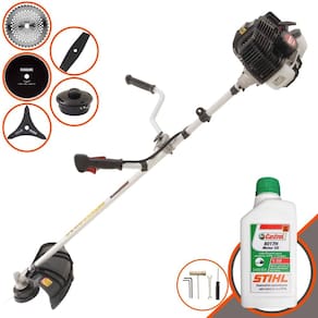 Roçadeira Kawashima KW52-LE À Gasolina 2T 52c 2,5HP Com Lâmina 3 Pontas + Faca 2 Pontas 330mm 2,7mm + Faca 40 Dentes 255mm 2mm + Faca 80 Dentes 255mm 1,5mm + ÓLEO CASTROL STIHL 500ml 2 Tempos