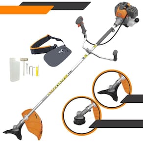 Com guidão ergonômico lateral, permite um alcance amplo e maior mobilidade, capaz de aumentar a produtividade diária. Possui motor 2 tempos á gasolina, de 42,7 Cilindradas (43cc) 10.000 de rotação 1,7HP de potência que proporcionam maior performance e economia na operação. Seu conjunto de acessórios inclui kit de ferramentas, cinto de sustentação, carretel de nylon e lâmina de corte 3 pontas.