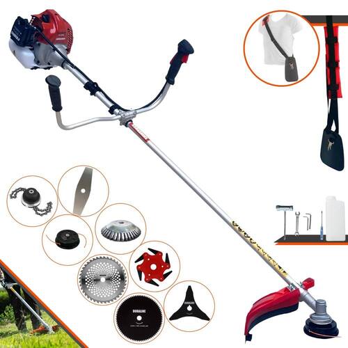 Com guidão ergonômico lateral, permite um alcance amplo e maior mobilidade, capaz de aumentar a produtividade diária. Possui motor 2 tempos á gasolina, de 43 Cilindradas; 1,7HP de potência que proporcionam maior performance e economia na operação. Seu conjunto de acessórios inclui kit de ferramentas, cinto de suporte almofadado, carretel de nylon e lâmina de corte 3 pontas.