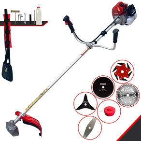 Com guidão ergonômico lateral, permite um alcance amplo e maior mobilidade, capaz de aumentar a produtividade diária. Possui motor 2 tempos á gasolina, de 62 Cilindradas; 3HP de potência que proporcionam maior performance e economia na operação. Seu conjunto de acessórios inclui kit de ferramentas, cinto de suporte almofadado, carretel de nylon e lâmina de corte 3 pontas.