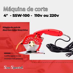 Especificações Técnicas: - Motor Direct Drive - Disco Octogonal de 4 polegadas - 05 níveis de velocidade - Capacidade de Corte de até 2,7 cm. - Iluminação LED na frente do disco - Protetor e guia de corte - Amolador acoplado ao disco - Rodízios para máquina deslizar sobre a mesa de corte - Velocidade de 600 a 1200 RPM - Potência de 200 Watts. - Corta todo tipo de tecido - Baixo ruído 55 Decibéis - Hertz: 50/60 Hz - Voltagem: 110 OU 220 Volts