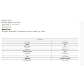 Regulagem de velocidade 1000 a 4500rpm , conforme material a ser cortado.
