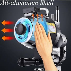 Máquina De Corte Industrial Faca De 10 Polegadas Máquina de cortar tecidos - IndustrialEsta máquina geralmente se destina a fazer cortes de tecidos com moldes de curvas abertas.Capacidade de corte: 11cm de enfestoFaca de corte de 10" (polegadas).220 volts - 550w de potência.Afiador automáticoBase: inox com roldanasMotor: MonofásicoLubrificação : AutomáticaCabo de sustentação emborrachado rosqueavel, fácil de retira-lo.Proteção frontal de aço contra acidentes, com regulagem de altura.INF. TECNICASLubrificação:Preencha o reservatório de óleo sempre que o mesmo ficar vazio.Um pouco de escorrimento de óleo sobre a lâmina é esperado em função do resíduo absorvido pelo pavio e pela ação da gravidade.Esse óleo previne a oxidação das peças da cortadora e deve ser deixado até a próxima utilização da máquina.