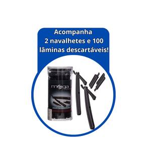 2 Navalhetes 100 Lâminas descartáveis Você tem a facilidade que a embalagem vira um pote para descartar as lâminas já usadas.