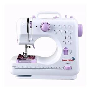 Especificações técnicas: - marca: importway - modelo: iwmc505c - tipo: máquina de costura portátil - tipo de máquina de costura: doméstica - cor: branca - aplicação: acabamento invisível, prega botões e zíperes, costura para trás, fixa elásticos - alimentação: bivolt automático 110~220v ou pilha 4 pilhas aa - não inclusas - funcionamento: 6v 1,2a/7,2w - inmetro: sim - velocidade: controle de velocidade eletrônico com 2 velocidades de costura: l baixa e h alta - quantidade de pontos: 12 diferentes pontos úteis para os mais diversos tipos de costura - iluminação auxiliar: possui lâmpada embutida para locais com pouca iluminação - braço livre: sim, torna mais fáceis as costuras tubulares como em barras e punhos de camisas - ajuste de tensão da linha: sim - costura reta: sim - cortador de linhas: sim - alça para transporte: sim - pedal de acionamento: sim - gaveta porta acessórios: sim