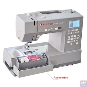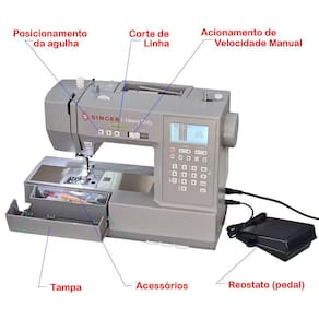 • Passador de linha na agulha, que facilita a passagem de linha pela agulha.