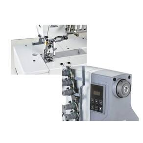 Galoneira Industrial de base plana aberta 3 agulhas com motor eletrônico direct drive, muito mais silencioso e econômico. A Gemsy 5501AE-01 ostenta um motor de acionamento direto com economia de energia e um came de rosqueamento externo inovador, esta máquina redefine a precisão e a eficiência. Transição perfeita entre as funções de costura de cobertura, costura de rolo, renda, faixa elástica e bainha. O motor direct drive quando comparado aos motores convencionais chega a economizar até 70% de energia, além de garantir maior agilidade na partida da máquina por estar conectado diretamente no eixo principal da máquina e não utilizar correia. A função automática de parada de agulha em cima ou embaixo, proporciona um grande aumento da produtividade pois dispensa o manuseio do volante pelo operador.