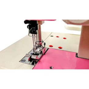 Este modelo de máquina é portátil de 3 agulhas, Bracob Baby agora na cor rosa .
