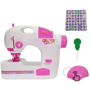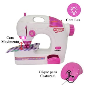 Acompanhando a máquina, estão inclusos 2 carretéis de linha, um pedaço de tecido e uma fita métrica, tudo o que a criança precisa para começar a costurar. As medidas aproximadas do produto são 16x8x20 cm, perfeito para as mãos das crianças. A máquina também possui luz e movimento, tornando a brincadeira ainda mais divertida.