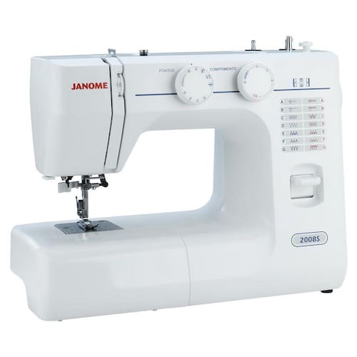 SIMA Máquina de Costura Mecânica Janome modelo 2008Sconta com 14 pontos e é indicada para a costura básica do dia a dia e costruas gerais como confecção de roupas, barras de calças, capa de almofada, itens decorativos para casa, fantasias e artesanato em tecido!