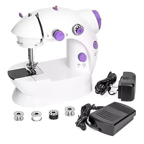 Itens Inclusos: - 1x Máquina de Costura Portátil; - 1x Pedal; - 4x Bobinas; - 1x Enfiador de Agulhas; - 1x Agulha Reserva; - 1x Fonte de Alimentação.