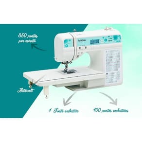 Pontos exclusivos, prática e fácil de se manusear, máquina de costura básica e patchwork, acabamentos, consertos em geral, zíper, quilt livre e quilt reto, 6 pontos caseado para Patch Apliqué sendo um deles duplo, no total são 100 ( cem ) tipos de pontos utilitários e decorativos e 1 (uma) fonte monogramas para compor nomes costurados com altura de 7 mm na letra maiúscula.