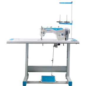 Diferenciais: Costura tecidos leves, medianos e pesados. Caixa de controle e painel acoplados ao cabeçote da máquina, simplificando a montagem. Motor Direct-Drive ligado diretamente ao eixo principal, proporcionando mais agilidade, economia e menos ruídos. Barra de agulha com micro-lubrificação que reduz o risco de manchas de óleo no tecido. Eixo superior e estica fio rolamentados.