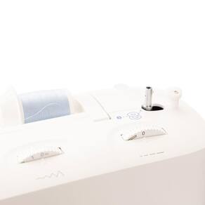 Possui também uma alça que facilita o transporte, caixa de bobina na vertical e placa isoladora que isola os dentes e auxilia a pregar botões, bordados livres.