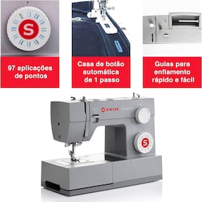 A Máquina de Costura Facilita Pró 4423 é uma máquina de costura mecânica mais forte e mais rápida, ideal para quem busca desempenho, durabilidade e precisão. Com estrutura interna de metal, oferece maior estabilidade e resistência, garantindo costuras impecáveis em diversos tipos de tecidos.Com 23 pontos utilitários, essenciais, decorativos e flexíveis, essa máquina permite explorar sua criatividade e realizar acabamentos profissionais. O caseador de 1 passo facilita a confecção de casas de botão com precisão e rapidez. Além disso, a ajuste da largura e comprimento do ponto proporciona maior controle e personalização para cada costura. Sua velocidade de até 1.100 pontos por minuto torna a costura mais ágil e eficiente. O rebaixador dos dentes possibilita bordados livres e quilting, enquanto o braço livre facilita costuras em mangas, barras e punhos. A iluminação em LED oferece mais clareza na área de trabalho, garantindo maior conforto visual. Principais Características:- 23 pontos: utilitários, essenciais, decorativos e flexíveis- Caseador de 1 passo: faz casas de botão com perfeição- Ajuste do comprimento do ponto: até 4mm- Ajuste da largura do ponto: até 6mm- Prega botões de 2 e 4 furos- Rebaixador dos dentes: ideal para bordado livre e quilting- Braço livre: facilita costuras tubulares como mangas e barras- Ajuste manual da pressão da sapatilha para diferentes tipos de tecido- Ajuste da posição da agulha: direita, centro e esquerda- Iluminação em LED: melhor visibilidade na área de costura- Base em aço inox: facilita o deslize dos tecidos, inclusive plásticos- Estrutura interna de metal: mais estabilidade e durabilidade - Alta velocidade: até 1.100 pontos por minuto