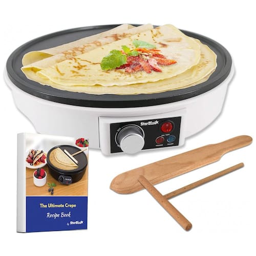 MATERIAL SUPER FINO nossa placa de cozimento quente é construída em alumínio de grau alimentício de alta qualidade, totalmente e confiável para uso a longo prazo. A superfície lisa não pegajosa permite que você experimente seus padrões criativos de crepe e facilita a inversão de alimentos. TERMOSTATO AJUSTÁVEL a placa resistente de 1000 Watts fornece uma saída de alta potência para permitir que você cozinhe refeições deliciosas em pouco tempo. Ele vem com um botão giratório simples para permitir que você defina a temperatura de acordo com o calor de cozimento desejado. PRATO GRANDE DE PARA REFEIÇÕES EM FAMÍLIA com o nosso crepe elétrico e seu prato grande de , você pode preparar refeições para toda a sua família como um profissional. Perfeito para os favoritos do café da manhã, como panquecas, bacon e ovos, também permite fazer dosa, roti, tortilla e blintzes muito mais rapidamente do que antes. BOTÃO LIGAR, DESLIGAR SEPARADO ao contrário de outros fabricantes de crepes, o fabricante de crepes Starblue vem com um interruptor liga, desliga distinto para garantir um cozimento . Agora você pode ligar, desligar convenientemente o botão da máquina de acordo com suas necessidades