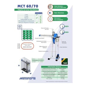 A construção robusta e durável da MCT 70 oferece longa vida útil e baixa manutenção, garantindo anos de serviço confiável e produtivo. Você pode contar com esta máquina de corte de viés/debrum para otimizar seus processos de trabalho.