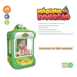 Características: Máquina de garra controlável por alavancas. Vem com pelúcias e bolinhas com Surpresa dentro. Temporizador de 60 segundos. Com sons e música e ajuste de volume. Acompanha cabo usb para utilizar conectado ao computador.