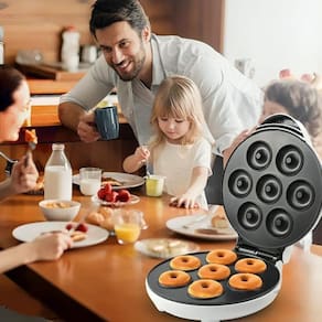 Máquina De Donuts Rosquinhas Placa Dupla Antiaderente 110V. Se a vida está um pouco azeda, apenas adoce com um donut. Ou melhor, com 7 SETE rosquinhas feitas por você, no conforto da sua casa e com o recheio que você deseja. Compartilhe com as pessoas ou guarde só para você, ideal para qualquer hora do dia: café da manhã, sobremesa ou aquele famoso aperitivo.
