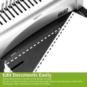 Amazon Basics Máquina de encadernação de pente, cinza - Máquina de encadernação manual de pente para criar documentos encadernados profissionalmente - Design tudo-em-um com furador e mecanismo de encadernação combinados - Perfura até 12 folhas por vez; prende até 350 páginas - Lâmina perfuradora de aço carbono durável e estrutura resistente - O mecanismo deslizante de papel fixo evita o deslocamento do furo - Para uso com espinhas de plástico estilo pente (não incluídas)