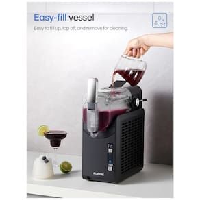 Direto de líquido para frozen! Com a Máquina de Margarita Congelada FOHERE, a tecnologia Quickfreeze inova com um sistema de duas partes que congela o líquido de forma homogênea e mantém a temperatura ideal para deliciosas bebidas geladas. Transforme seus líquidos favoritos em bebidas congeladas suaves e saborosas, como vinho, café, refrigerante, suco, leite com chocolate e muito mais. Com capacidade de 1,9 litros, controles de espessura para resultados suaves em até 60 minutos e modo de autolimpeza para facilidade de manutenção, esta máquina é perfeita para criar as bebidas mais ideais. A FOHERE possui trava de segurança para crianças, garantindo operação tranquila. Além disso, conserva suas bebidas congeladas por até 12 horas, com fácil limpeza e design ergonômico. Desfrute de bebidas congeladas perfeitas a qualquer momento!