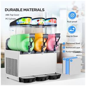 A Máquina de Frozen ROVSUN é feita com material de alta qualidade em aço inoxidável 304 e PC de qualidade alimentar, garantindo durabilidade, resistência à corrosão e visão clara. Compressor potente de 900W e condensador de cobre garantem refrigeração rápida, produção acelerada de frozen, economia de energia e baixo ruído. Fácil de usar, com painel de controle simples e display digital de temperatura. Possui modo de frozen, modo de suco/noturno e modo de limpeza. Tanques independentes, bandejas removíveis, pés antiderrapantes e acessórios práticos incluídos. Ideal para uso doméstico e comercial em restaurantes, bares, festas, etc. Capacidade de 45 litros.