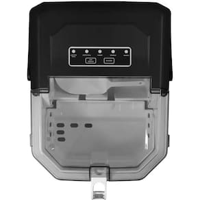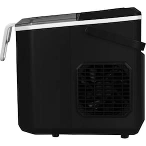 Máquina de gelo com capacidade de 12kg/dia, 2 tamanhos de gelo (pequeno e grande), sensor de cesta cheia, função auto limpeza, design black com tampa transparente, alça de transporte, saída de ar lateral.Capacidade de armazenamento de gelo