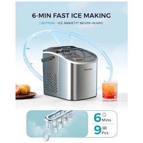 6 minutos de fabricação de gelo e ultra silencioso nosso fabricante de gelo Euhomy leva apenas 6 minutos para aproveitar o primeiro lote de gelo fresco. Com um tanque de água de 1,2 litros e um poderoso compressor, a máquina de fazer gelo portátil produz facilmente uma capacidade máxima de gelo de aproximadamente 11,8 kg por dia e suporta até 0,59 kg de gelo de cada vez. Além disso, nossa máquina de fazer gelo não é apenas excelente em refrigeração, mas também produz menos de 45 decibéis de ruído normal, garantindo um ambiente confortável e silencioso para desfrutar da produção de gelo, semelhante a um freezer em funcionamento.