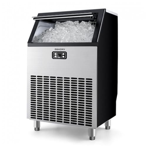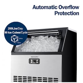 Máquina de Gelo Comercial EUHOMY 90,7 kg/dia Bin 29,5 kg Aço Inoxidável Sob Balcão Autolimpeza ETL 115V - 110V