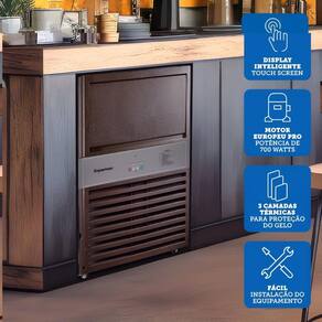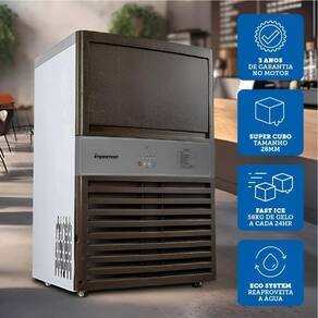 Característica técnicas: Grande capacidade produtiva: Produz até 58/kg por dia. Oscilação devido a temperatura da água O maior reservatório da categoria: Reservatório que comporta até 20 litros Cubos maciços e translúcidos maior cubo do mercado: 28 x 28 x 22 mm 22 x 22 x 22 mm Suporte técnico em todo o território nacional. Temos assistência técnica no Brasil inteiro Moderno display digital. É possível regular a espessura do gelo, de acordo com a sua necessidade Drop System: O mesmo sistema utilizado pelas maiores redes de fast-food e grandes redes hoteleiras mundiais Baixo consumo de água e energia. Compressor Europeu de última geração, gerando excelente desempenho com baixo consumo de água e energia Maior garantia do mercado. 03 anos no compressor e 01 ano de fábrica Instalação simplificada. Tudo simples e intuitivo no processo de instalação Máquina completa: Pá coletora, conexão e mangueiras inclusas. dreno e filtro de água Revestido com o melhor Aço. Aço inox 304, o melhor inox contra corrosão e ferrugem Gelo potável e filtrado: Filtro de água embutido