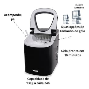Itens Inclusos: 1 Máquina de Gelo, 1 Pá, 1 Manual (português)