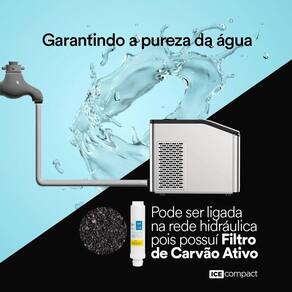 Ficha Técnica :: Alta capacidade: 35kg/dia. :: Resistente: Corpo em inox para dar mais robustez e facilidade de limpeza. :: Alta capacidade de armazenamento: Até 4kg. :: Adaptável: Pode ser alimentada com água de forma automática, sendo ligada a rede hidráulica ou manualmente, através de sua tampa superior. :: Mais Saúde: Com filtro de carvão ativo para garantir sempre um gelo mais puro. :: ECO-FRIENDLY: Refrigeração por compressor super silencioso com gás ecológico que não agride o meio ambiente. :: TURBO ICE: produz 36 cubos de gelo a cada 15 minutos. :: Compacto e portátil, cabe em vários cantinhos, vai aonde você quiser e ainda combina com qualquer ambiente. :: Potência: 200W :: Gás Refrigerante: R290 (42g) :: Tanque de água: 3,8L