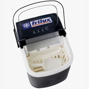 Máquina de Gelo Portátil 12kg QL12H Frilux. Ideal para pequenos estabelecimentos, bares, escritórios, uso doméstico e similares. Compacta e prática, com alça para transporte, permite produzir gelo de forma rápida e eficiente. Sensores inteligentes que indicam nível de água baixo e estoque de gelo cheio. Visor transparente. Gás ecológico. PRODUÇÃO: Até 12Kg de gelo por dia. CAPACIDADE: até 700g de gelo pronto. RESERVATÓRIO: 1,2L de água. PESO: 6Kg. DIMENSÕES EXTERNAS (CxAxL): 22,4x28,8x29,5cm. Toda nossa linha de produtos estão certificados e atendem a portaria 371 do INMETRO referente a certificação de segurança. Máquina de Gelo Portátil 12kg QL12H Frilux é na Atau.