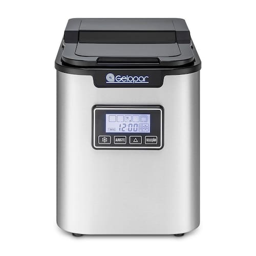 Máquina de Gelo Portátil GMGD15PR Gelopar. Equipamento de alta tecnologia que vai facilitar seu trabalho na hora de conseguir gelo em grandes quantidades para preparo de sucos, vitaminas, bebidas, frapês e drinks. Fabricação de gelo em cubos. Sistema de refrigeração por compressor. Display digital multifunções: Inicialização de funcionamento. Programação de horário de fabricação. Seleção do tamanho do cubo de gelo. Avisos de funcionamento no display. Revestimento Externo: Revestimento externo: Aço inox. Tampa em PSAI com visor translúcido. Reservatório de água com capacidade para 2,2 litros. Bandeja coletora e pá em polipropileno. Sistema autolimpante. Dreno para escoamento de água. Tampa sujeita a condensação da umidade do ar. Baixo ruído. Produz até 12kg de gelo/dia. 3 tamanhos de cubas. PRODUÇÃO: Até 12 Kg de gelo por dia. CONSUMO: 1,65 kWh/dia. FREQUÊNCIA: 60Hz. PESO: 9,7Kg. DIMENSÕES EXTERNAS (CxAxL): 24,9x32,7x36cm. Equipamento certificado conforme Portaria Inmetro nº 371/2009. Máquina de Gelo Portátil GMGD15PR Gelopar é na Atau. Capacidade De Produção Em Peso: Até 12 Kg de gelo por dia Número De Certificado De Segurança Elétrica: Portaria Inmetro nº 371/2009 Ean: 7899069641834