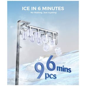 Rápido Como um Relâmpago: Chega de esperar! Em apenas 6 minutos, você terá 9 cubos de gelo em formato de bala prontos para dar aquele toque especial à sua bebida. Em 24 horas, a máquina pode produzir até 12 kg de gelo. Vai receber amigos para uma festa? Não se preocupe, a máquina de gelo está sempre pronta para ajudar.
