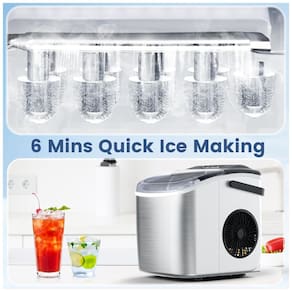 Produção Rápida de Gelo – Em Apenas 6 Minutos: Em apenas 6 minutos, a máquina de gelo Joy Pebble produz 9 cubos de gelo no formato de bala. Ela tem capacidade para produzir até 12 kg (26,5 libras) de gelo por dia e armazenar até 60 cubos de gelo. Com essa capacidade, você nunca ficará sem gelo para suas bebidas e cervejas. Além disso, a tecnologia avançada de detecção infravermelha avisa automaticamente com uma luz indicadora quando o gelo está cheio ou a água está acabando, deixando você tranquilo.