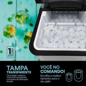 Eficiência Turbo Ice: A Máquina de Gelo EOS 15kg Ice Compact é equipada com a tecnologia Turbo Ice, garantindo que você tenha gelo sempre à mão quando precisar. Com a capacidade de produzir 9 cubos de gelo a cada 10 minutos, nunca mais você terá que esperar muito tempo para ter uma bebida refrescante ou preparar suas receitas favoritas. A eficiência dessa máquina é simplesmente impressionante.
