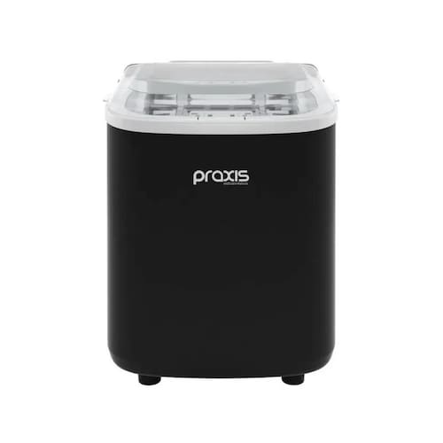 Máquina de Gelo Praxis MGP12 com capacidade de produção de 12kg/dia, reservatório de 1,2 litros, ciclo rápido de 8 minutos para 9 cubos, opções de tamanho de cubos e painel de controle intuitivo.Capacidade de armazenamento de gelo