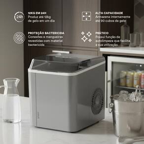 Gelo em minutos e praticidade onde você estiver. A Máquina de Gelo Spirit 12Kg é leve, portátil e eficiente, ideal para festas, escritórios ou viagens. Produz gelo tipo bullet em apenas 10 minutos, com painel intuitivo, função de autolimpeza e design moderno que combina com qualquer ambiente.
