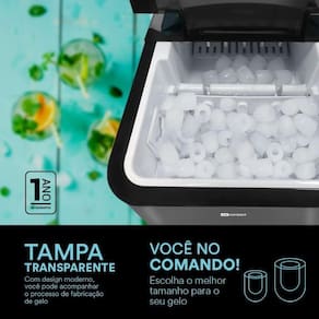 - Seletor de tamanho de gelo: Pequeno ou grande.
