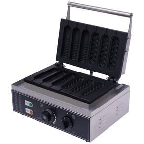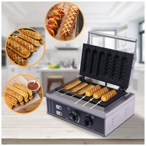 A máquina de fazer waffles elétrica antiaderente é projetada para assar waffles, cachorros quentes e crocantes. Feita de aço inoxidável de qualidade, a máquina é bonita, durável e fácil de limpar. As grades especialmente projetadas permitem que você asse 6 waffles de uma só vez. E o tempo de cozimento é de cerca de 5 minutos. Pequenas aberturas são feitas na lateral de cada grade de waffle para inserir o palito no início do processo de cozimento. Não é necessária uma camada antiaderente, é com superfície antiaderente e pode ser limpa com qualquer dispositivo sem correr o risco de riscar ou danificar a superfície de cozimento