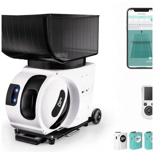 Máquina de Lançar Bolas de Tênis Pongbot Pace S Pro, Robô de Treino com IA até 129 km/h, 564 Exercícios e Controle por App.